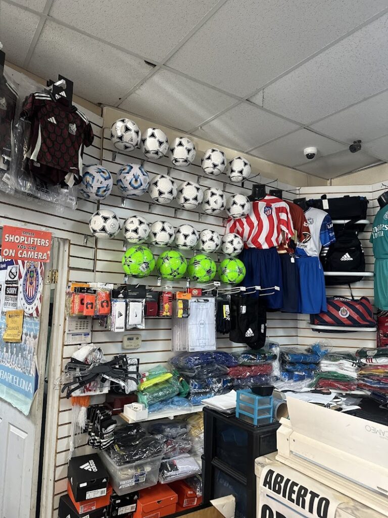 Soccer, football, and potentially other sports as hinted by merchandise available.