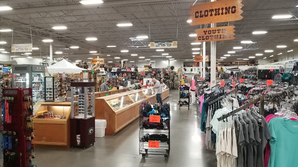 Wide selection of sporting goods including hunting, fishing, and camping gear